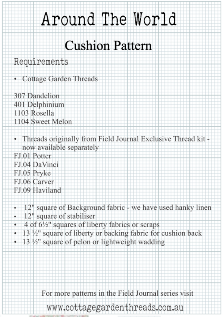 This kit includes the Pattern, Signature Range threads, and Field Journal exclusive threads. **Fabric is NOT included**