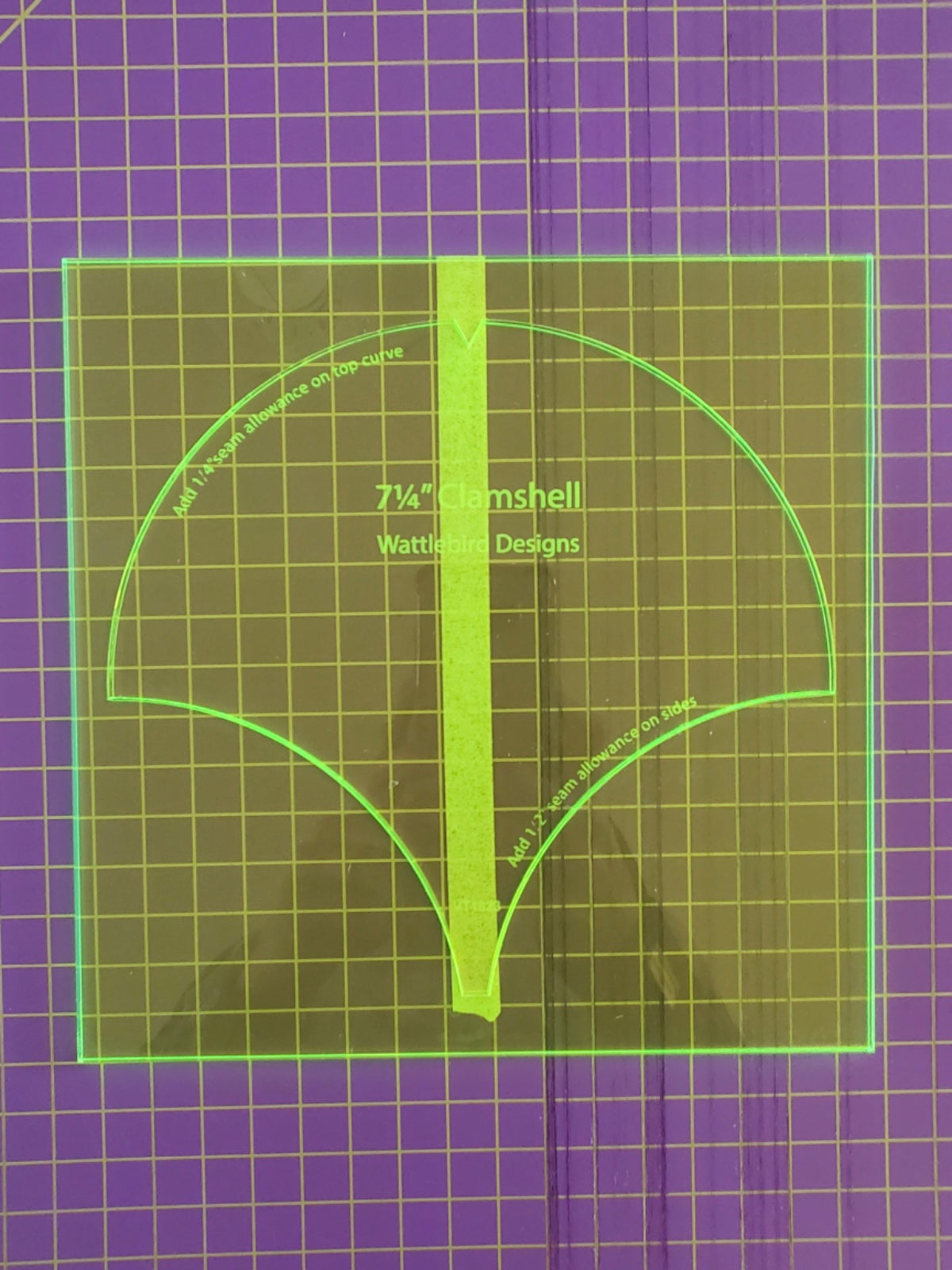 7-1/4 inch Clamshell Acrylic Template designed exclusively for Pele Mele quilt pattern by Veronique Diligent for Wattlebird Designs.