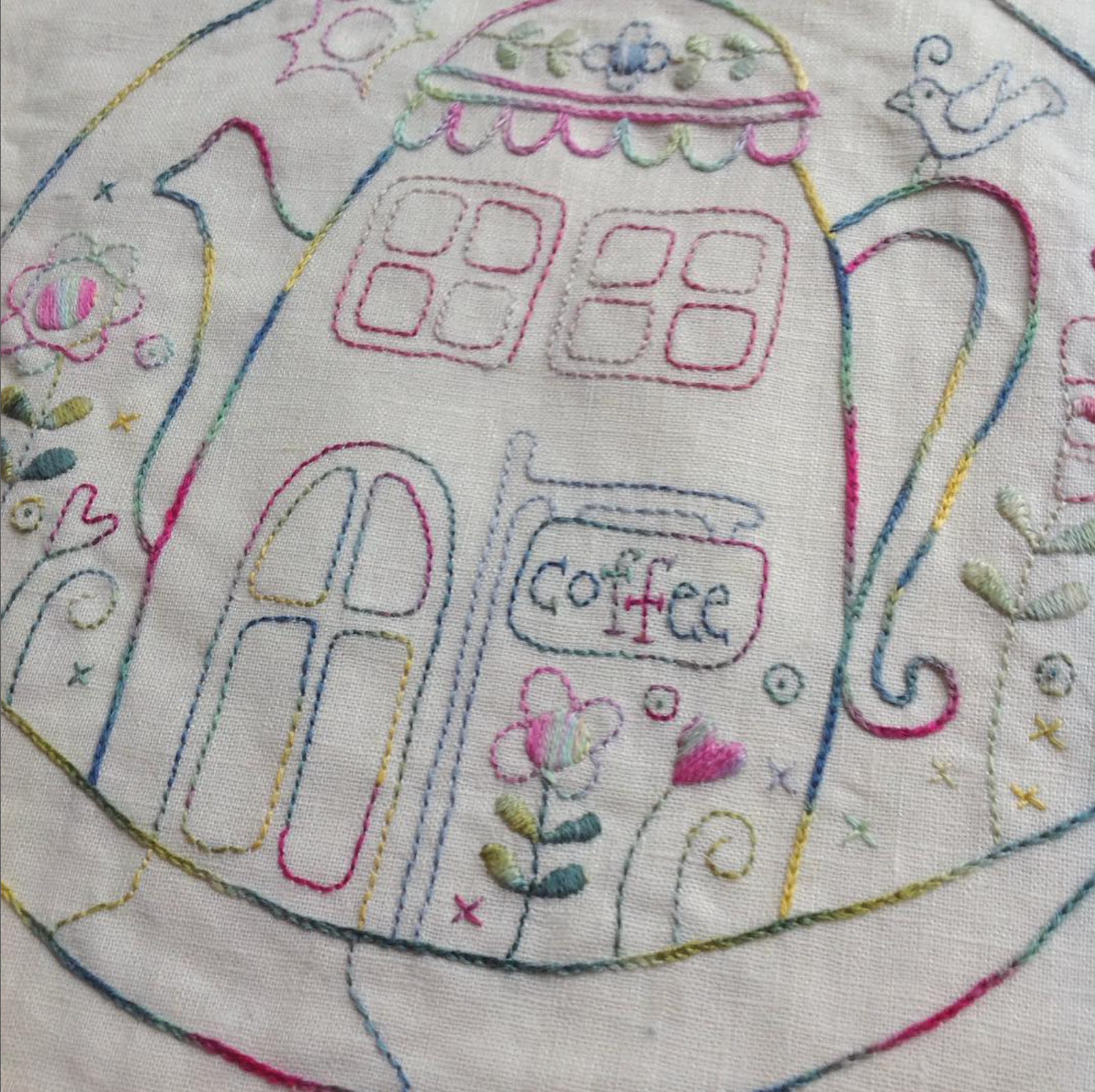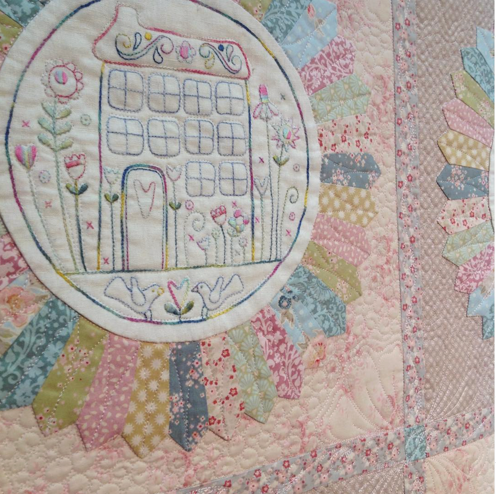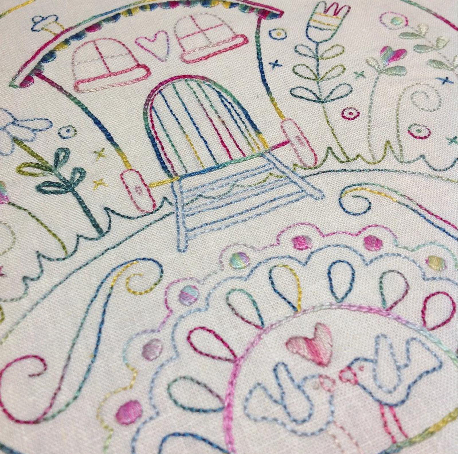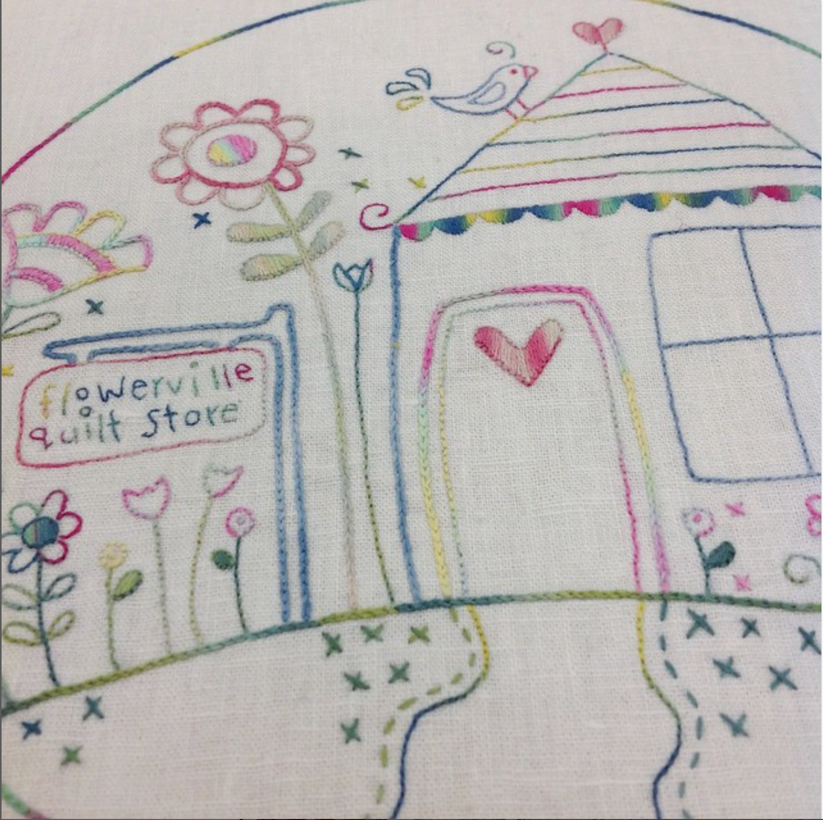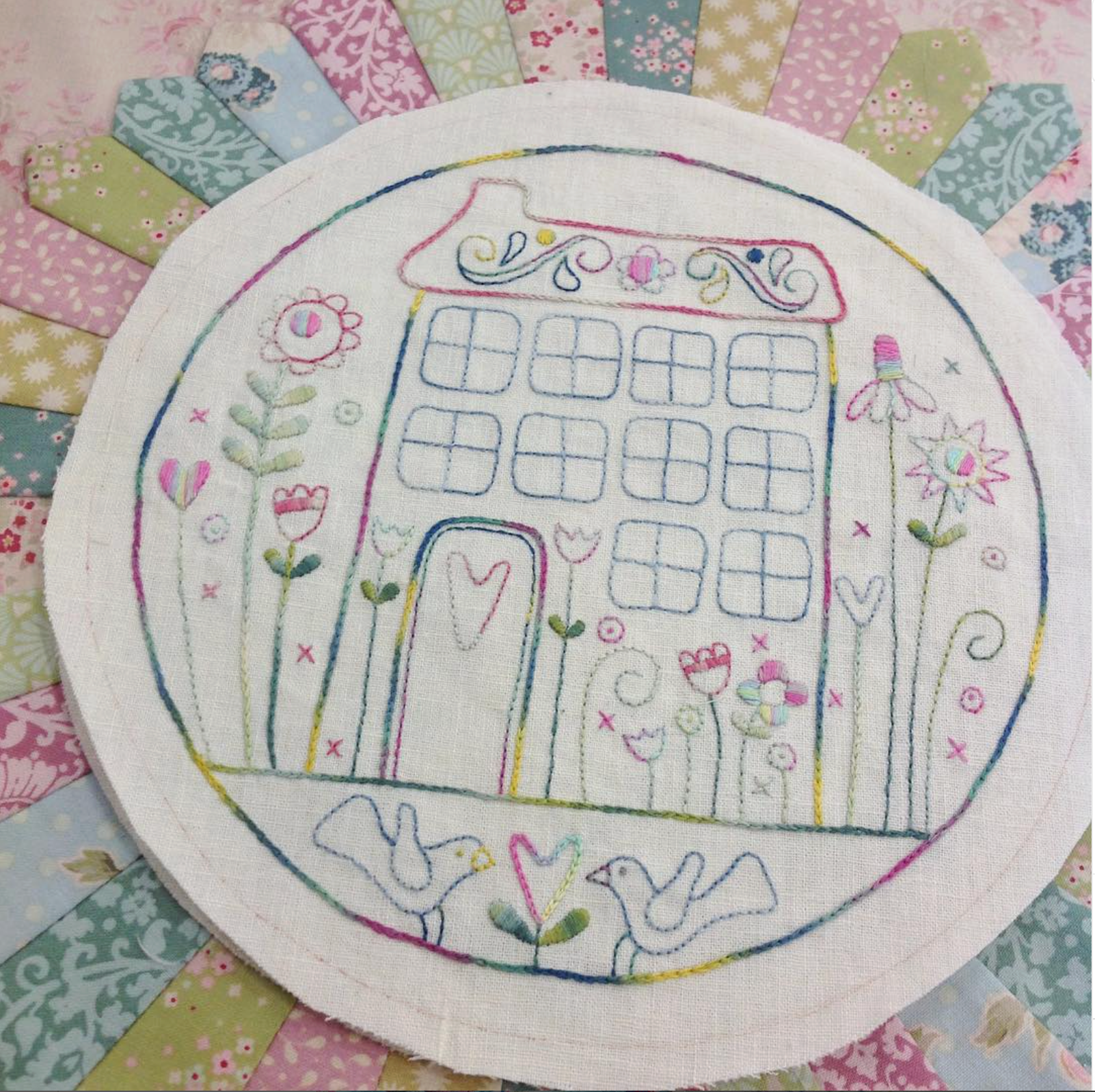 Flowerville is a delightful embroidery and patchwork quilt that captures the charm of whimsical village life through delicate stitchery and thoughtful design. Perfect for lovers of hand embroidery, this project combines gentle stitching with classic Dresden Plate blocks for a beautiful heirloom-style quilt.