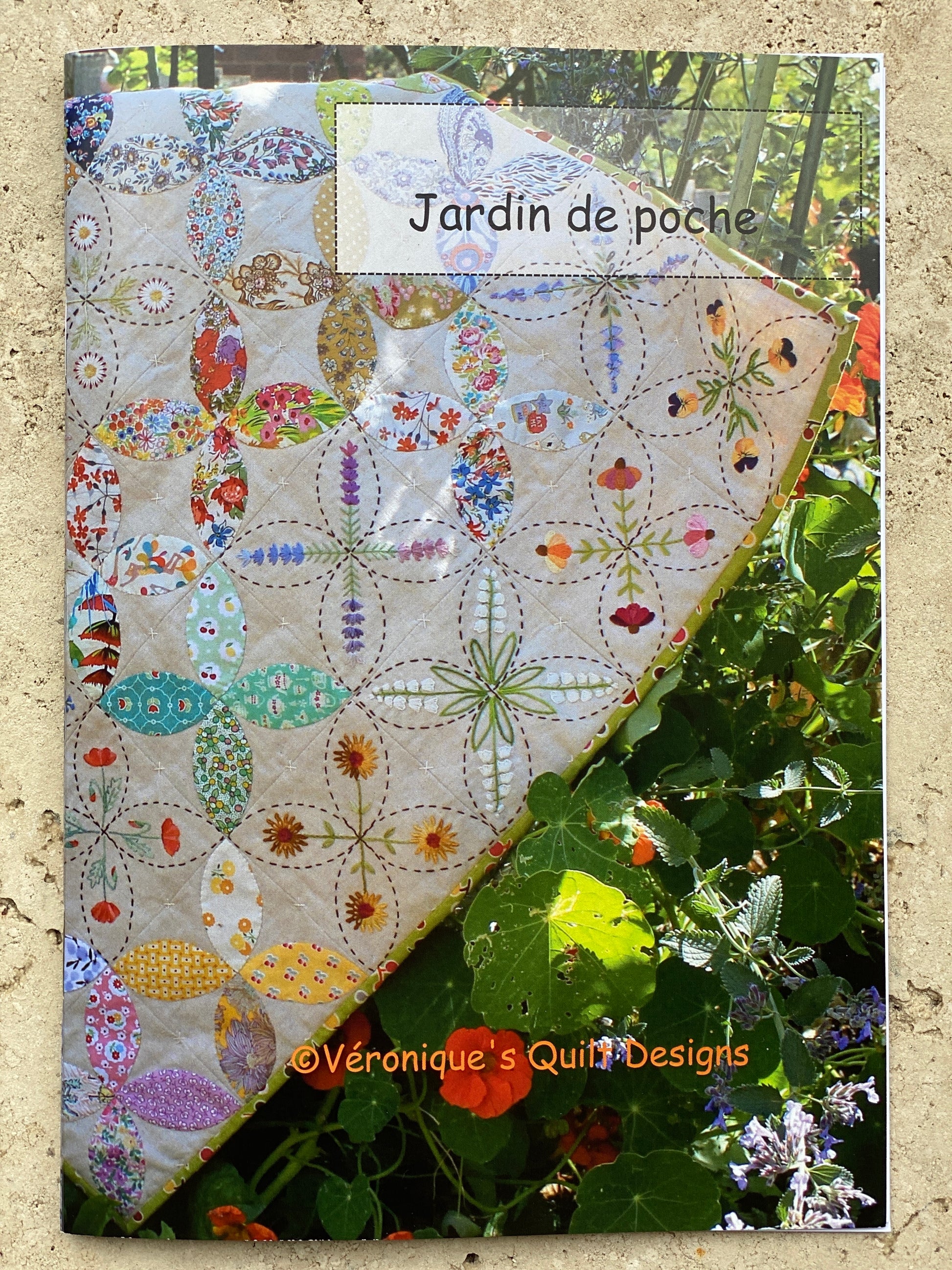 - Jardin de Poche (the original): A traditional shape, the orange peel, revisited and extended to include a mini garden, a “Jardin de Poche” (pocket garden). Featuring gorgeous flowers such as poppies (Veronique's favorite), lilly of the valley, fuchsias, and lavender. Acrylic template NOT included.