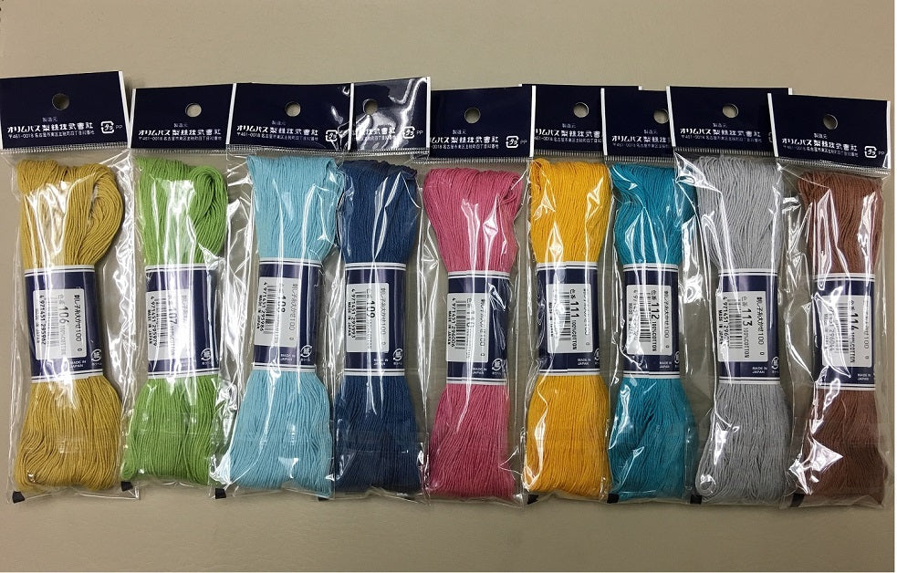 Olympus Sashiko Thread. 100% Cotton. 109 yards per package. Similar to Size 8 Pearl Cotton.